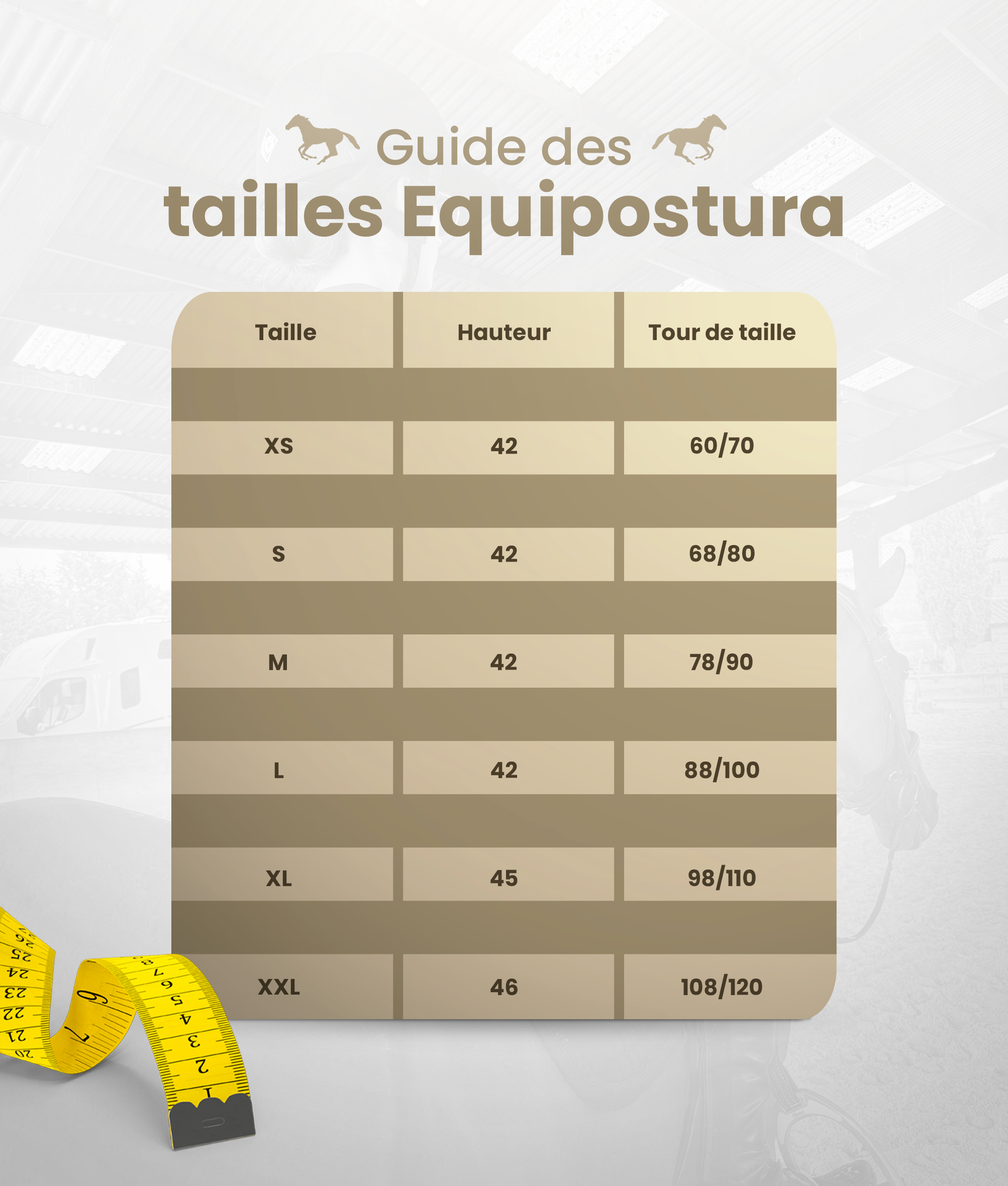 EquiposturaPro est disponible du XS au 3XL. Un guide visuel des tailles est disponible, et le premier échange est offert pour vous assurer un ajustement parfait. Grâce à ses sangles réglables, vous pouvez facilement ajuster le maintien même si vous êtes entre deux tailles.